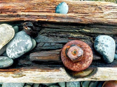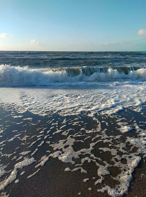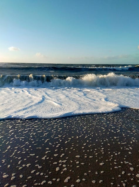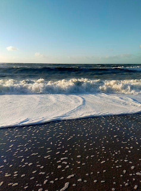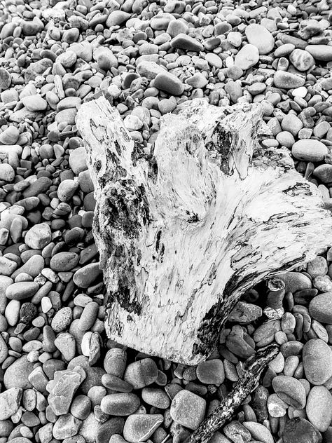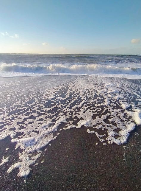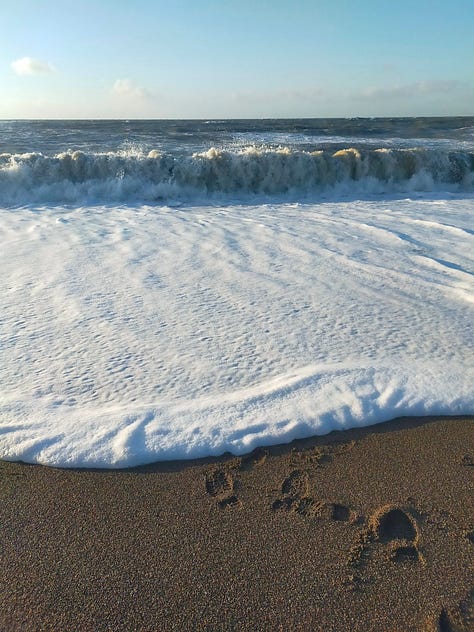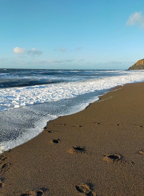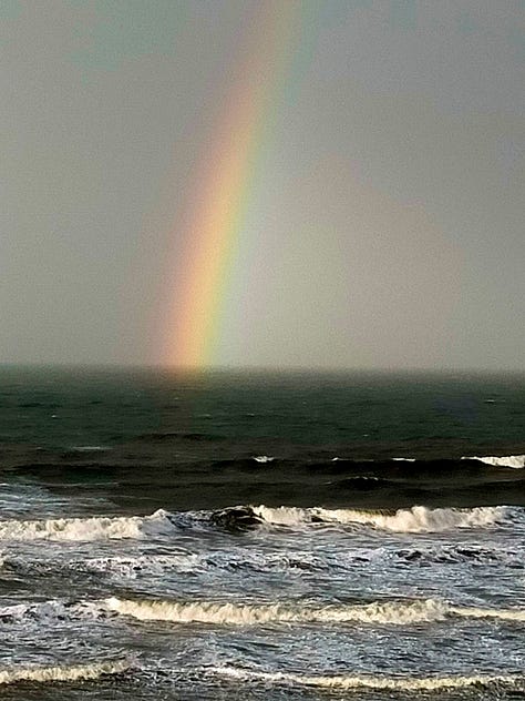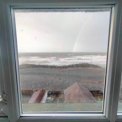 Her current residence is on the shores of Borth. A wild place. My mornings there were filled with windows onto the ocean, the smell of salt air, the sounds of crashing waves, the art of driftwood and pebbles and of course rainbows.