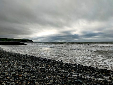 So, to walk along the rocks of Borth beach, or the long sands of Aberystwyth, 40 years on, was to encounter a memory bank full of reverberations. I was here as a fledgling university student in 1981. Hair down past my shoulders and a rebellious outlook on the world, I lasted all of 3 months before the world took me along another road for a few years. A story to tell another day. Landing back in ‘Aber’ after a hitchhiking sojourn in France in 1984 was the beginning of the end of those times. I met my daughter’s future mother. My daughter was born in Cornwall in October 1985.